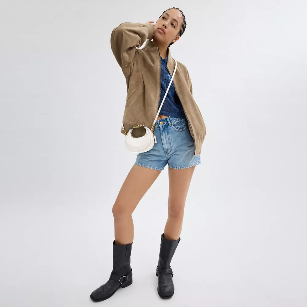 Ahead of the curve, our Jonie is a rounded style that’s part crescent silhouette, part hobo and all attitude. The compact style is crafted of buttery soft glovetanned leather and finished with a secure zip-top closure detailed with our C hardware. Carry by hand and wear as a wristlet with the interlocking top handle for nights out or add the detachable leather crossbody strap for days on the go. (Explore the possibilities.)