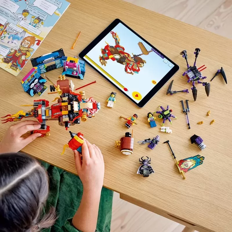 �?Children become the heroes in their own thrilling adventures with this LEthtGO�?Monkie Kid�?Lion Guardian (80021) mech toy, Spider Queen battle rig, posable robotic spider and buildable arcade.